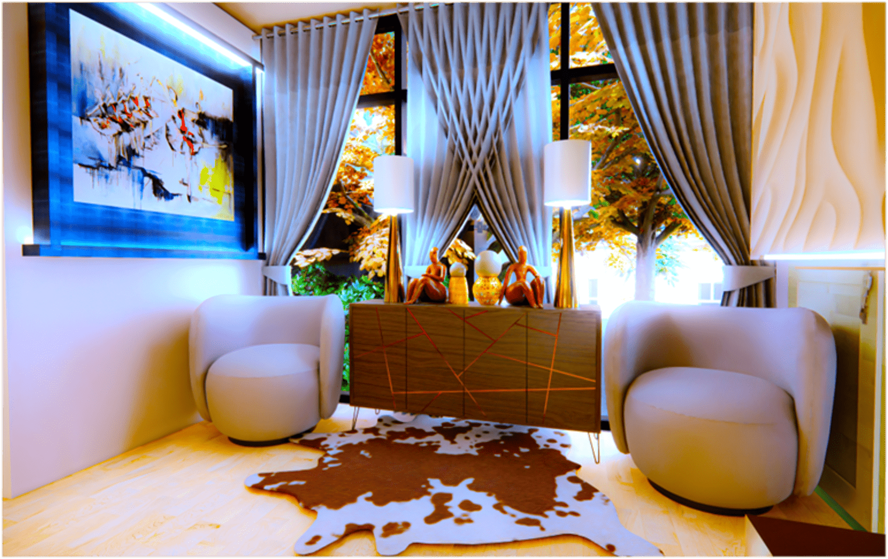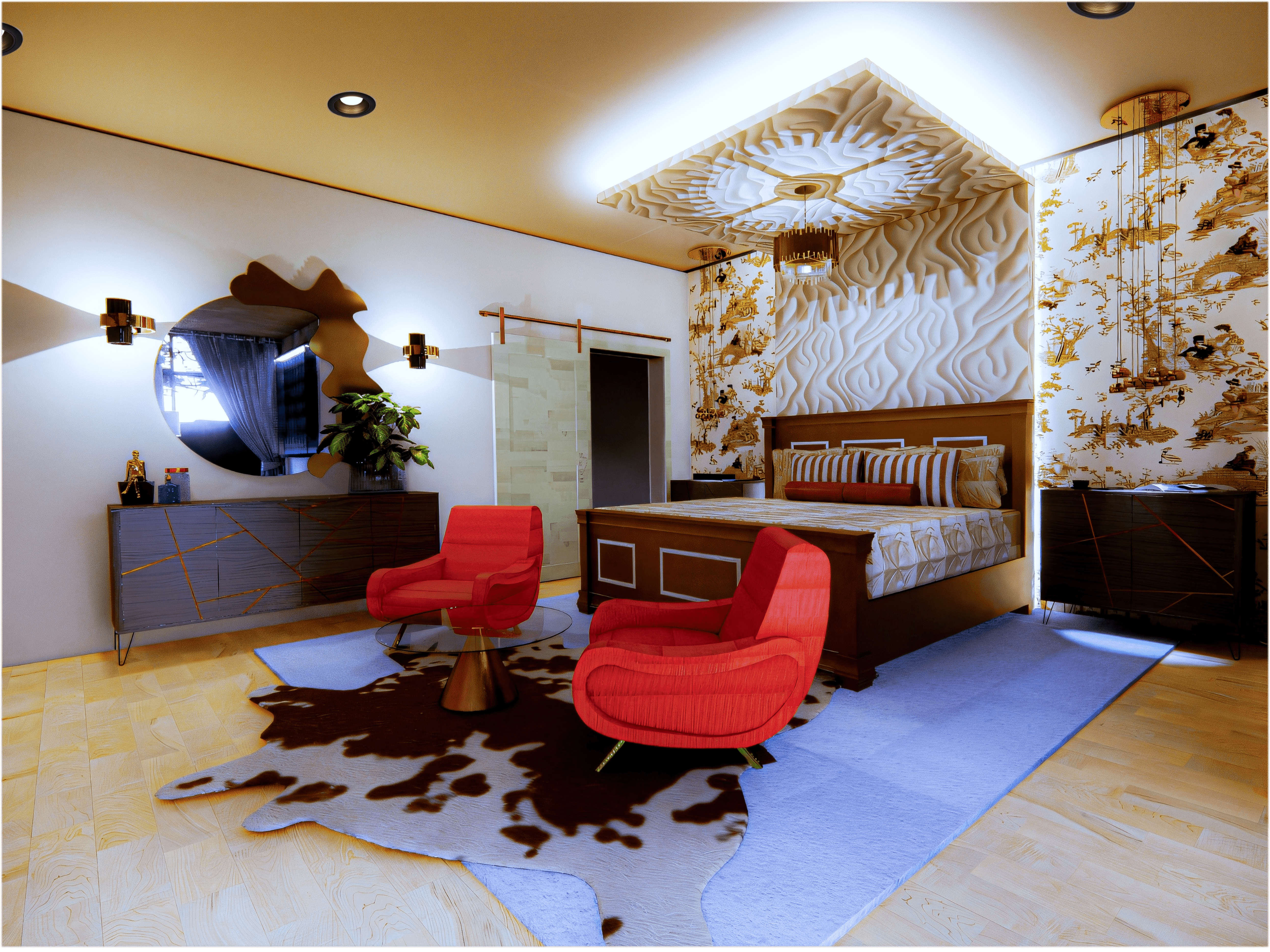 I love for my work to tell a story. In order to keep dwellers & viewers intrigued, my spaces must exude my passion for maximalist and eclectic expression via my relentless command of color, textile, and geometry.